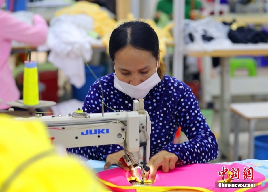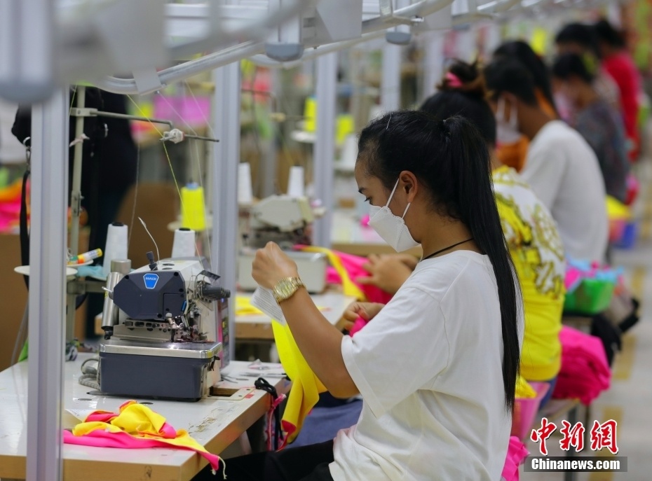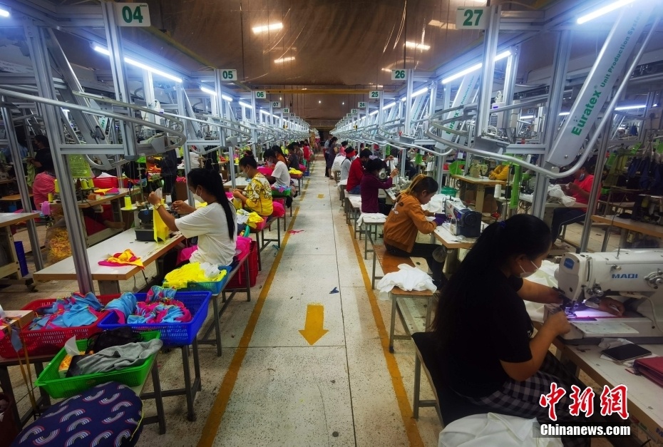 随着柬埔寨重开国门,各领域经济活动逐渐放开,作为柬埔寨经济支柱产业之一的制衣业一派繁忙景象。图为12月8日,柬埔寨金边GNT制衣厂房的作业流水线。 中新社记者 欧阳开宇 摄