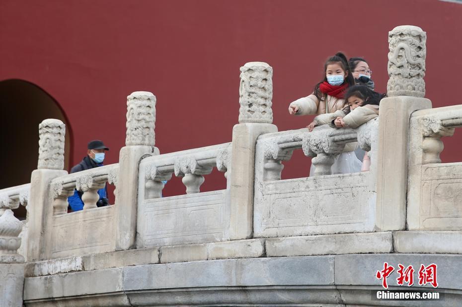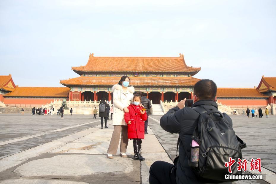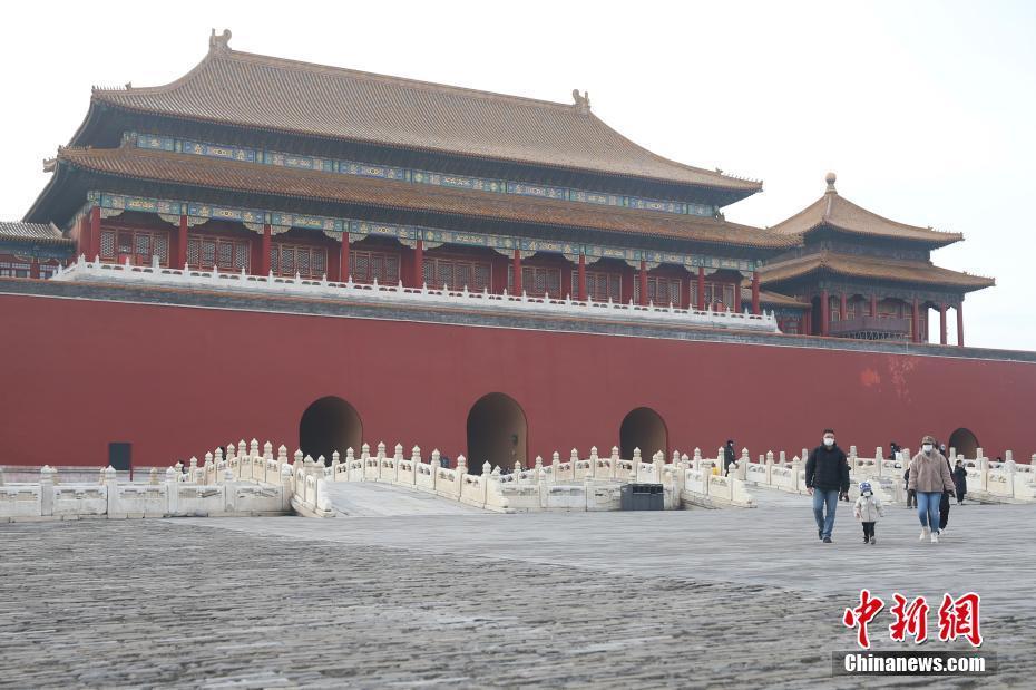 12月10日,北京,参观者带孩子在故宫博物院合影留念。故宫博物院11月29日发布公告称,故宫博物院决定在原有6岁以下或身高1.2米以下儿童,以及每周二统一预约的中小学生免费的基础上,试行所有开放日对未成年人免费开放。2021年12月3日20时起,可通过故宫博物院售票网站、“故宫博物院观众服务”微信公众号预约2021年12月10日以后的未成年人免费门票(含珍宝馆、钟表馆)。 中新社记者 易海菲 摄