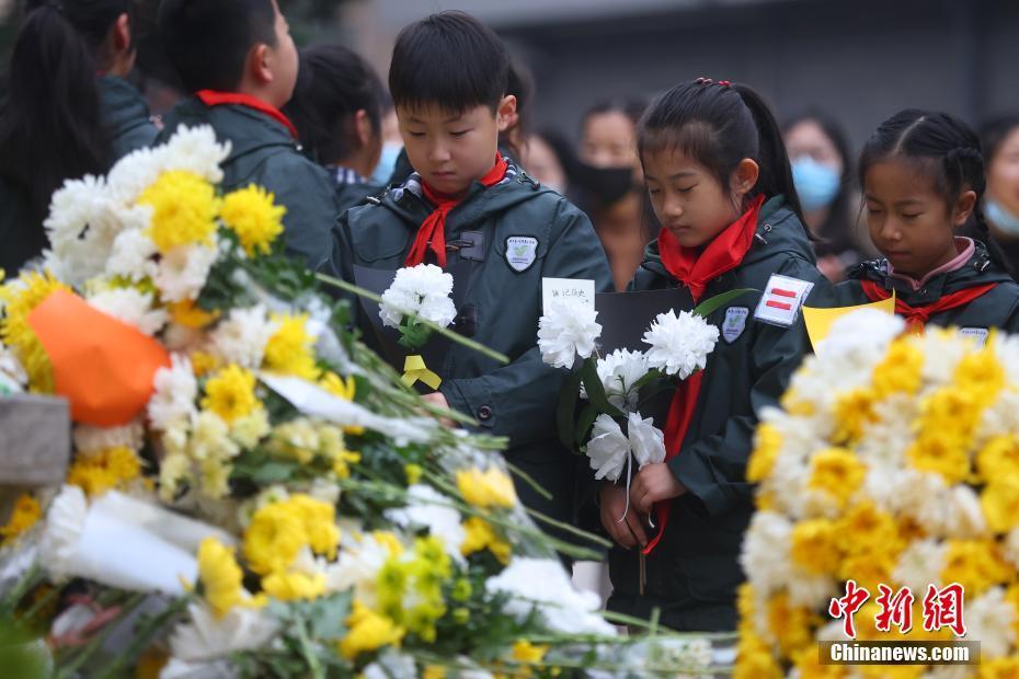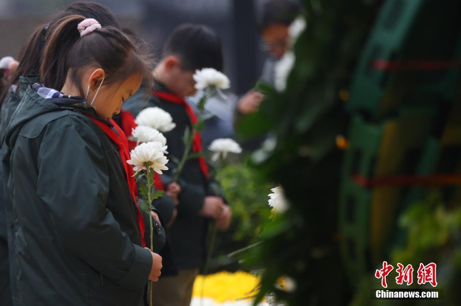 图为小学生在侵华日军南京大屠杀遇难同胞正觉寺丛葬地悼念遇难同胞。 中新社记者 泱波 摄
