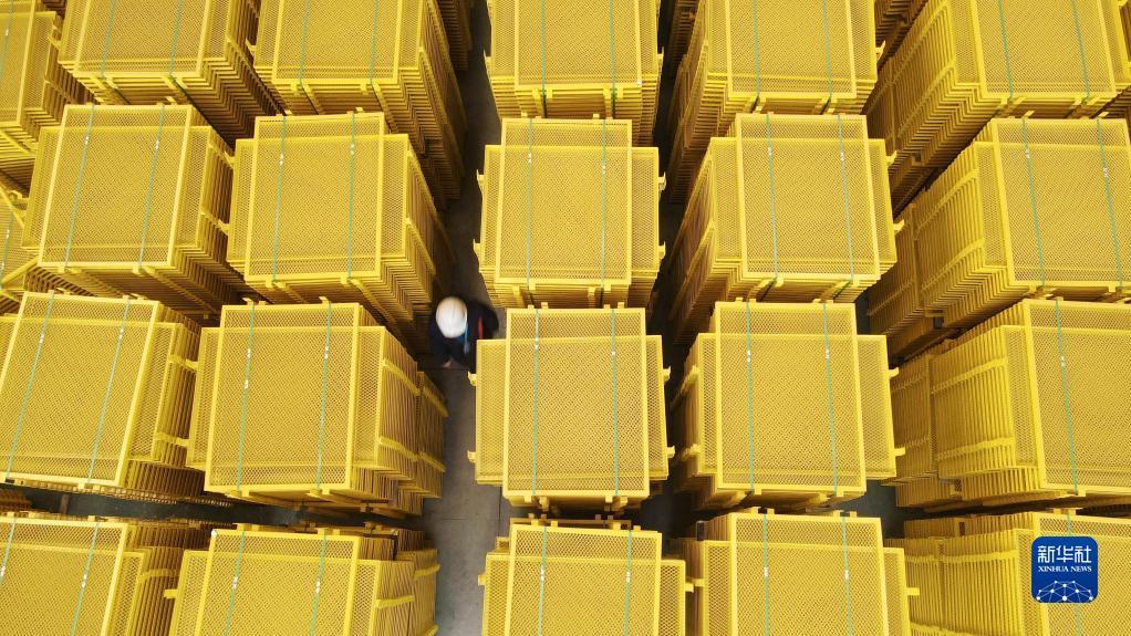 这是芜湖驰蓝智能科技有限公司生产的快递物流智能设备配套产品(12月10日摄,无人机照片)。