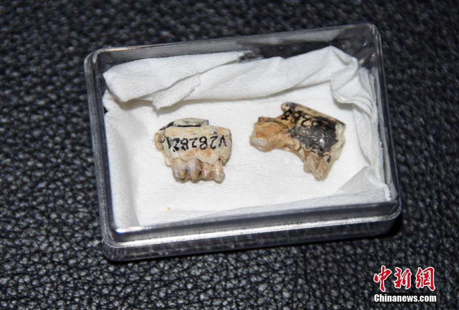 12月17日,中国科学院古脊椎动物与古人类研究所发布消息说,该所科研团队最新在内蒙古二连盆地首次发现两件约4800万年前的豕齿兽化石,其中一件新种命名为“阿山头豕齿兽”,另一件为豕齿兽未定种。图为在北京拍摄的“阿山头豕齿兽”化石(左)和另一件豕齿兽未定种化石。 中新社记者 孙自法 摄