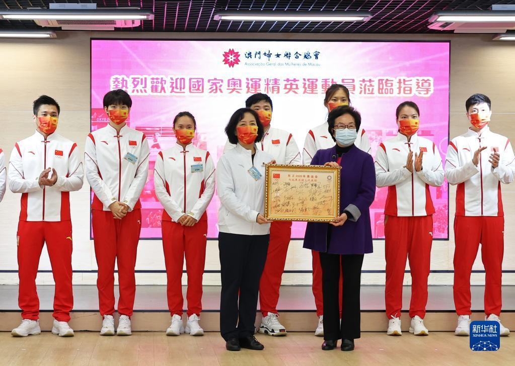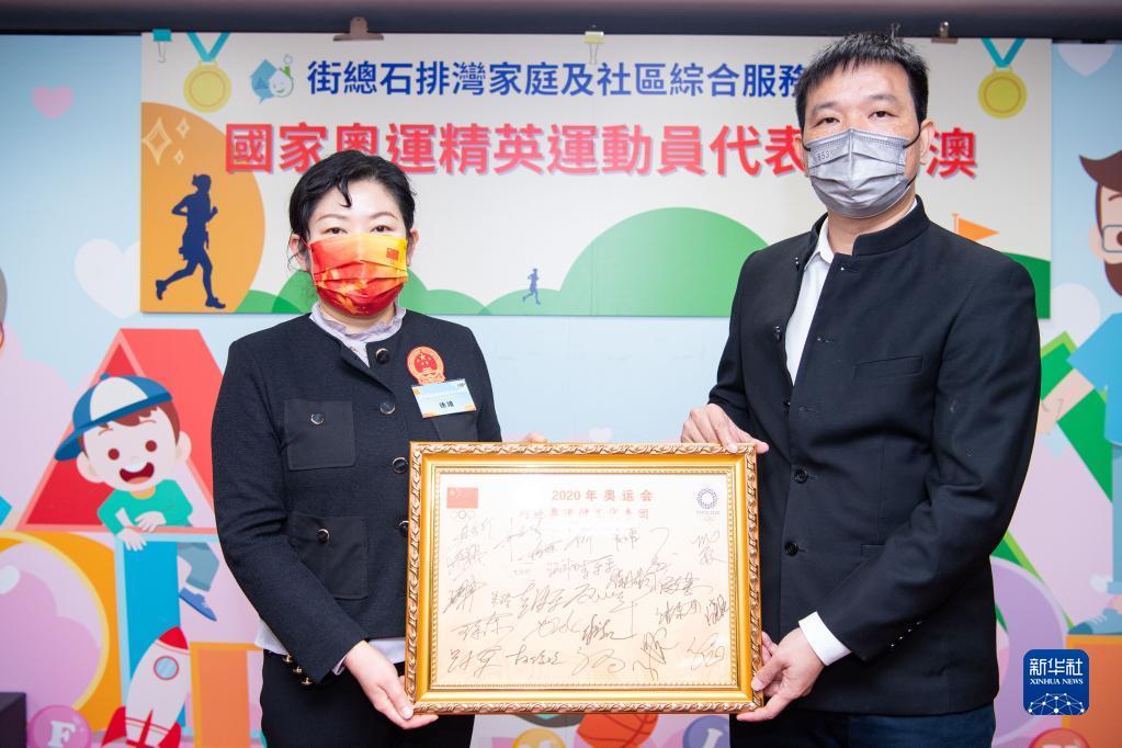 当日,内地奥运健儿代表团成员来到澳门妇联乐满家庭服务中心、澳门街坊联合总会石排湾家庭及社区综合服务中心等地,与社区居民交流互动。