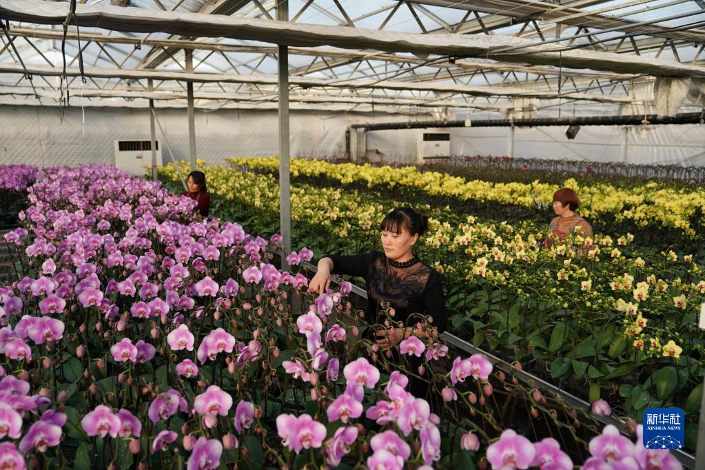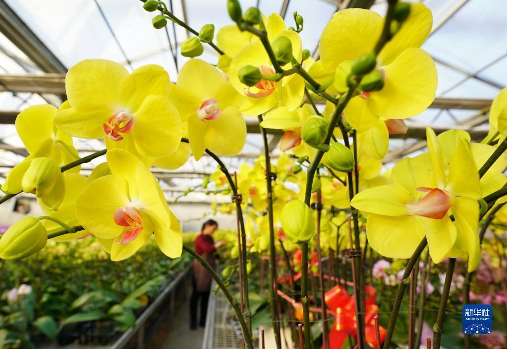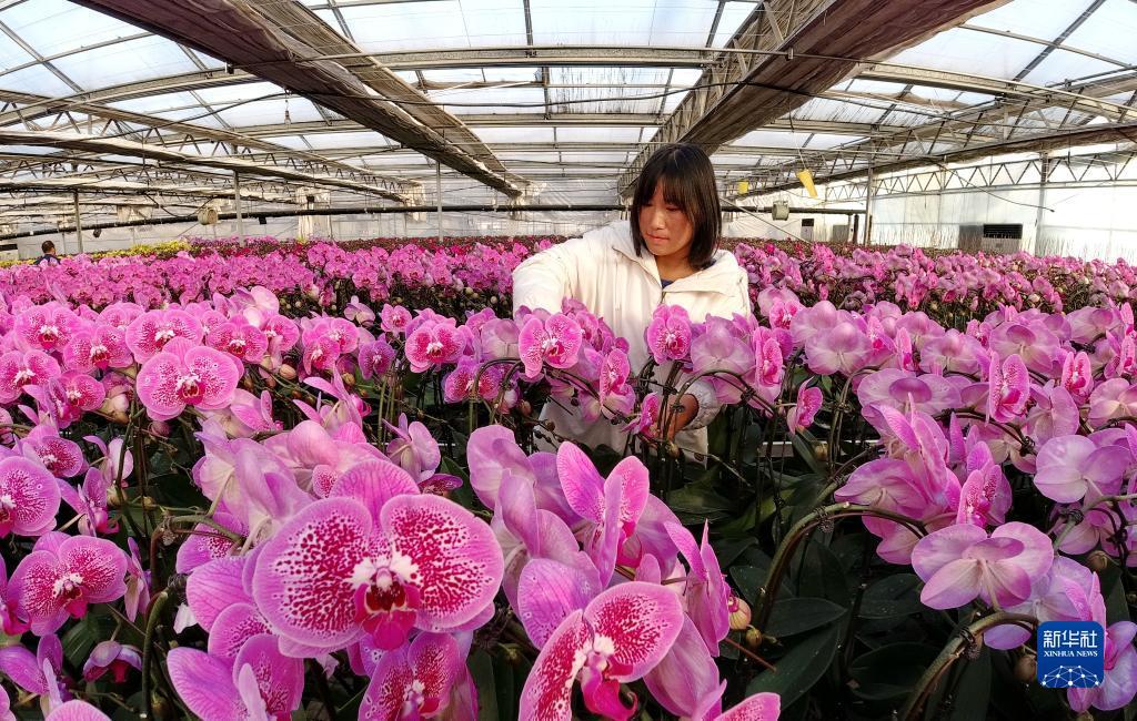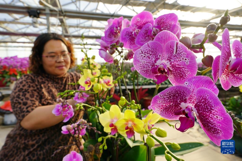 冬至时节,河北省迁西县罗家屯镇兰花种植组培基地内各式兰花争奇斗艳,花农们忙着打理花卉,为即将到来的鲜花销售旺季做好准备。