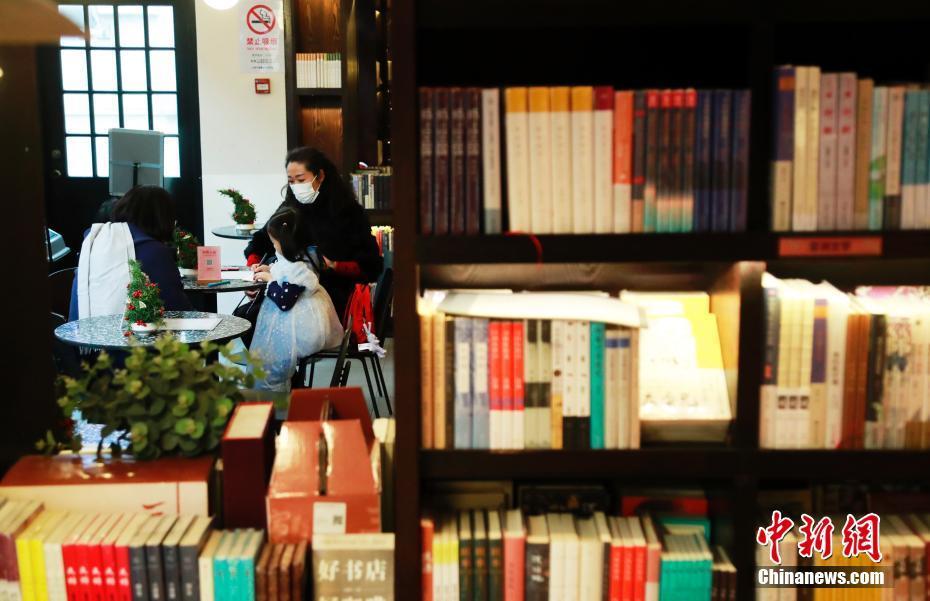 12月24日,读者在思南书局参观。思南书局位于上海复兴中路517号,始建于1926年,是一栋三层带阁楼的法式花园洋房,曾是爱国将领冯玉祥的故居。1951年冯玉祥夫人李德全将这栋建筑捐献给国家。如今,这里成为了上海公共文化空间,被读者誉为梧桐树下的“人文心脏”。中新社记者 汤彦俊 摄