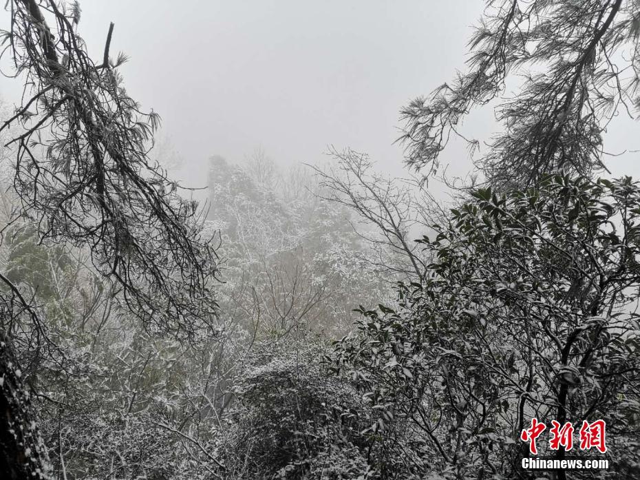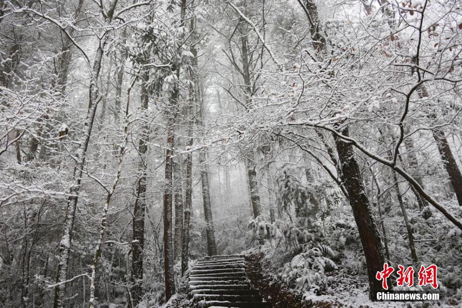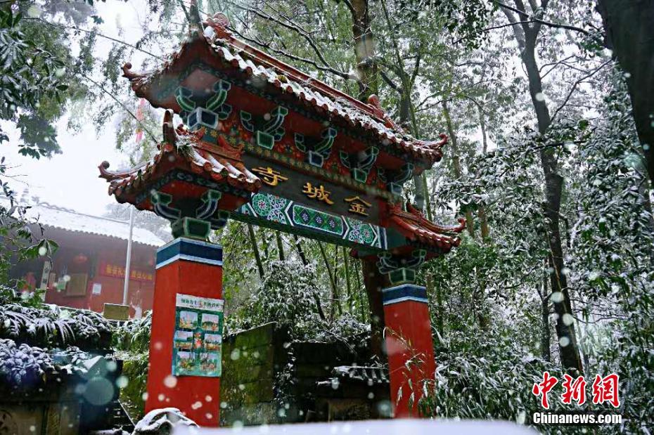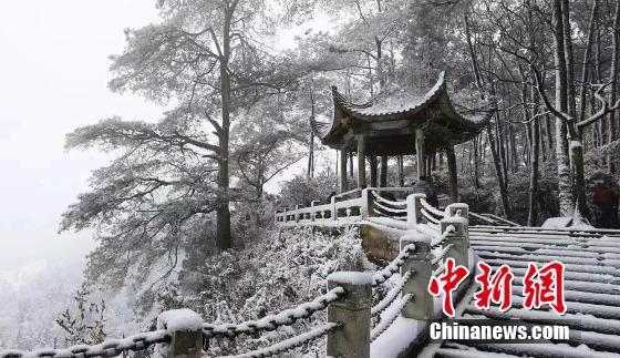 12月26日,四川多地迎来入冬首场降雪。27日8时,在四川南充市高坪区金城山生态旅游度假区,满山银装素裹,飞舞的雪花为景区披上了银装,显得格外空灵清幽,宛如琉璃仙境。金城山生态旅游度假区地跨四川南充、广安两市,度假区周边有沪蓉高速、兰海高速、G318以及S203与县乡道连通。金城山景区主峰为南充第一高峰,海拔824.6米。素有“川北小峨眉”“蜀都东来第一山”“养生福地,避暑天堂”的美誉。杨波 摄