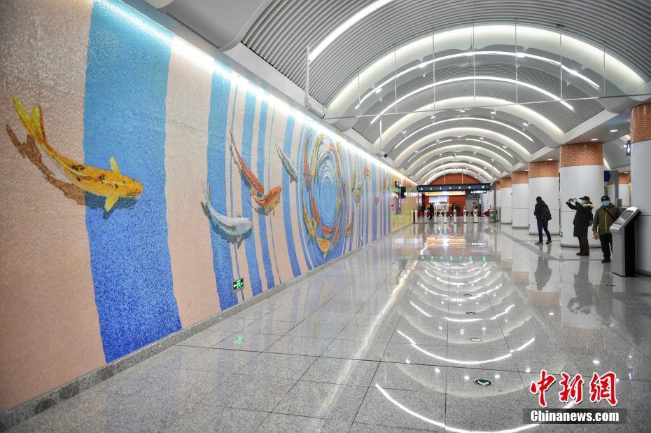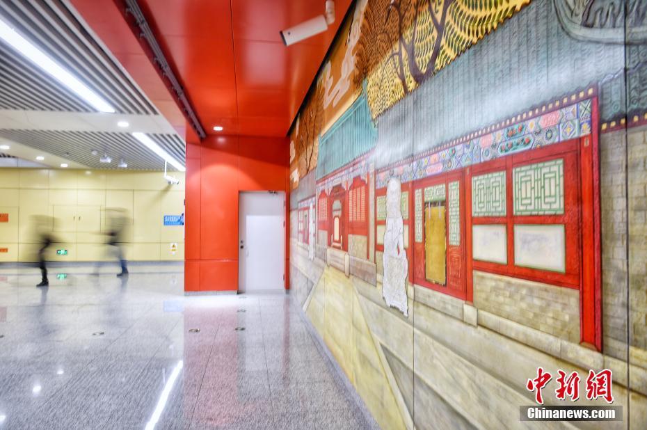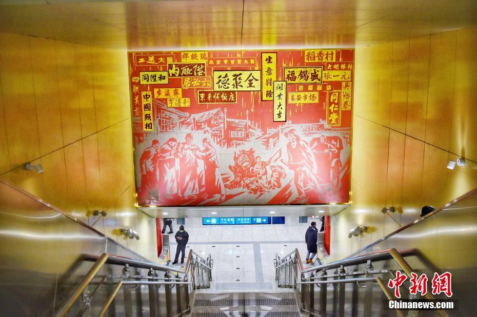 1月4日,探访新开通的北京地铁8号线金鱼胡同站、王府井站和前门站,三座新开放的地铁站采用国风设计,再现北京古都风韵。图为北京地铁8号线王府井站。中新网记者 李霈韵 摄