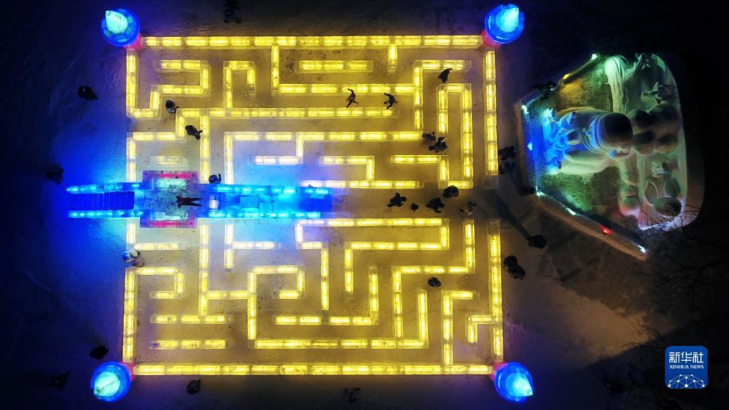 这是1月5日拍摄的哈尔滨冰灯艺术游园会园区内的一处冰迷宫(无人机照片)。