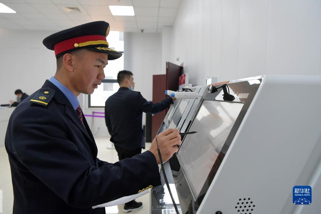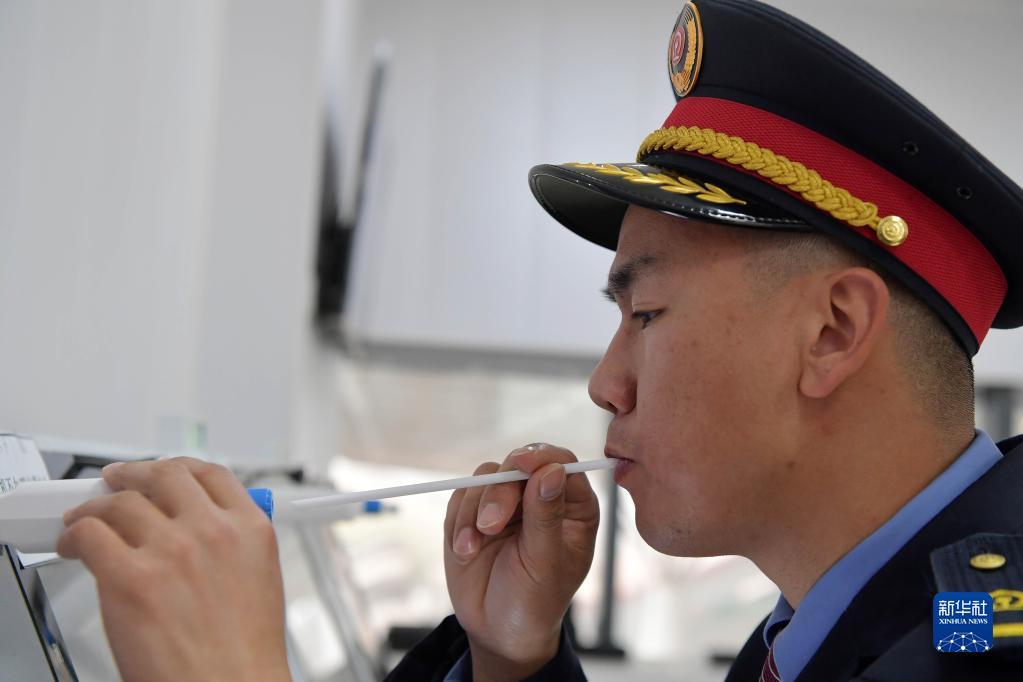 张定秀上岗前依照程序做好酒精测试工作(1月15日摄)。新华社记者 彭昭之 摄