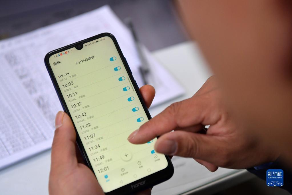 虽然派班室电脑里设置了闹钟提示,但为确保工作万无一失,张定秀还是在工作手机里设置了56个闹钟,给高铁安全运行加上了“双保险”。