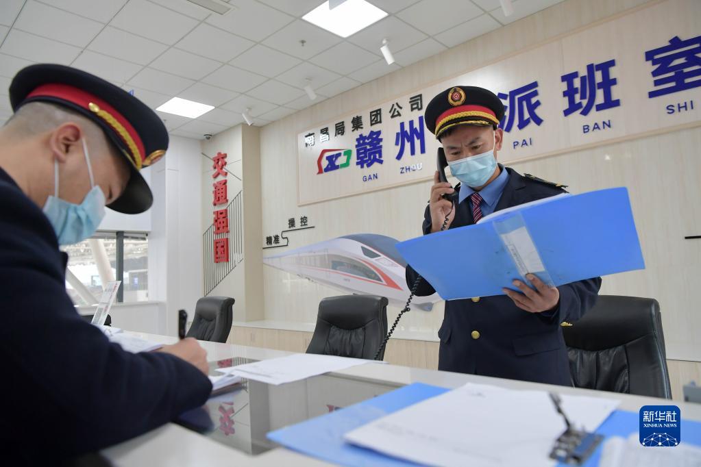 在中国铁路南昌局集团有限公司向塘机务段赣州西派班室,当班期间,张定秀的工作手机闹铃时常响起。作为一名高铁派班员,他的工作是要通知高铁司机及时到岗,协助做好上车前的准备工作。