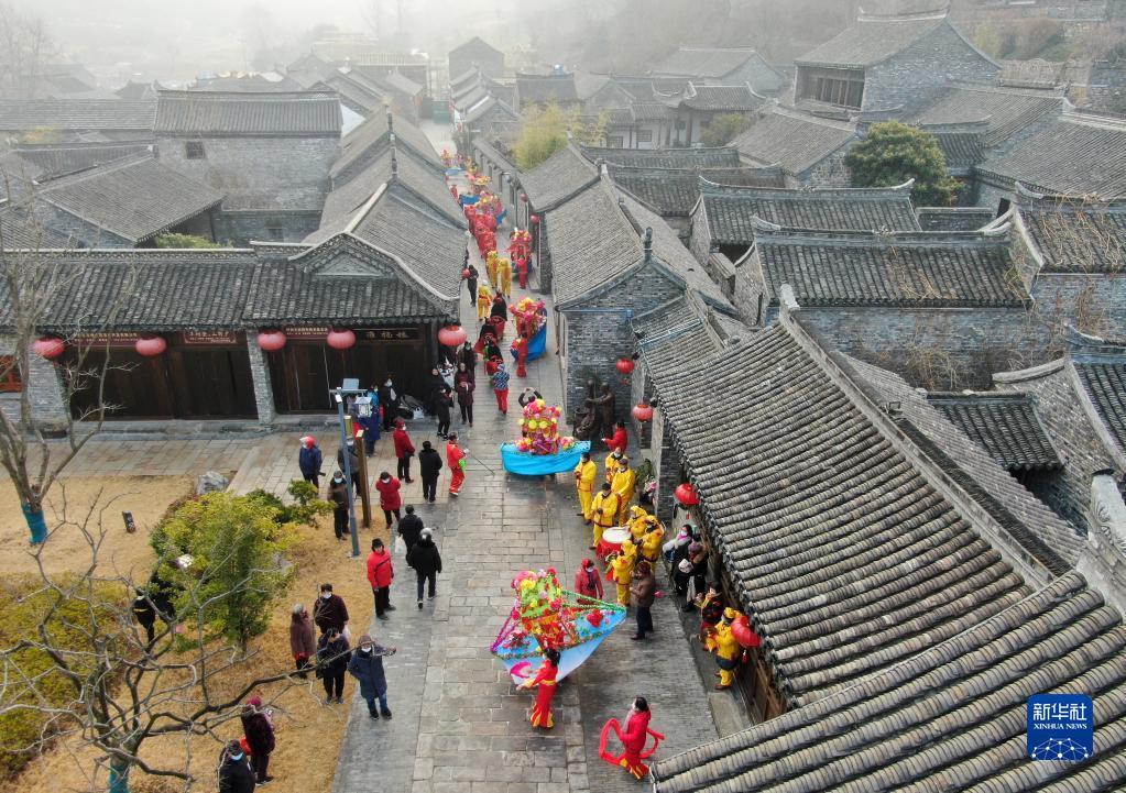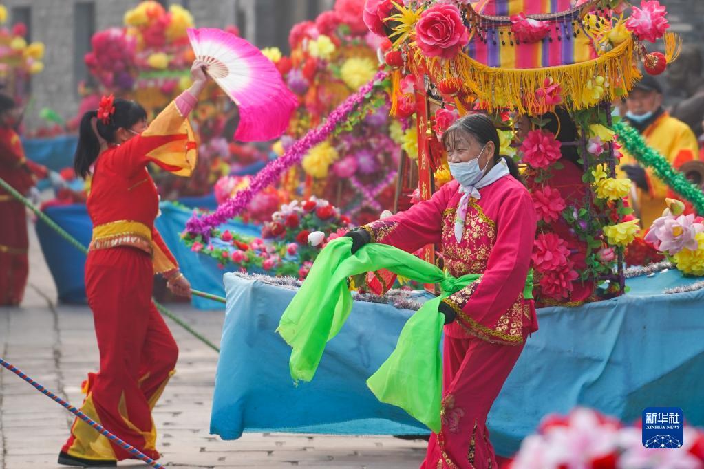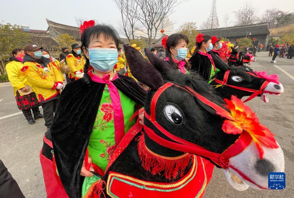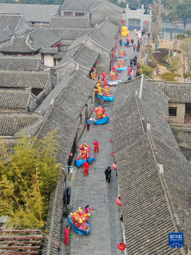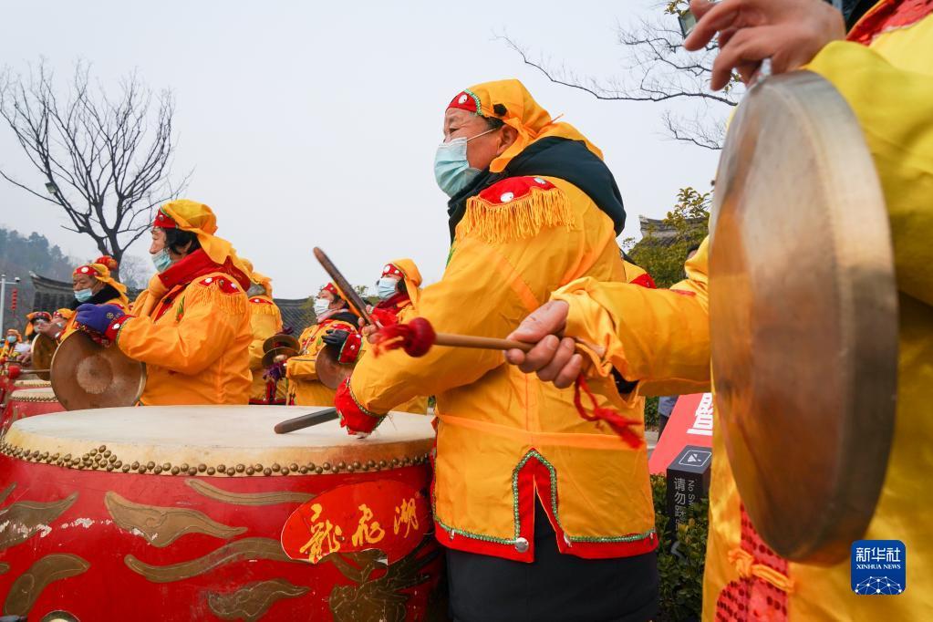 1月19日,民俗艺人在江苏省淮安市盱眙县第一山历史文化街区表演。