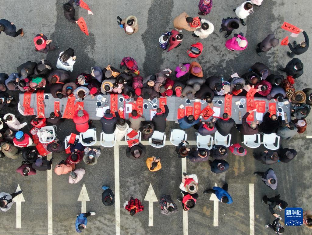 1月19日,书法家在江苏省淮安市盱眙县第一山历史文化街区写春联。