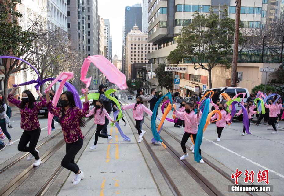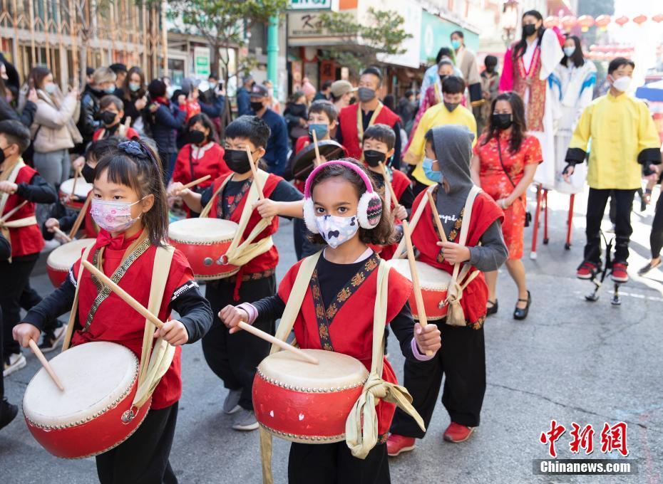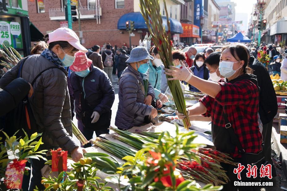 当地时间1月29日,一场小型农历新年巡游在美国旧金山唐人街举行。为期两天的春节花市也于当日开幕,吸引大量市民前往购物。2021年,旧金山一系列庆祝新春活动因新冠疫情而取消。中新社记者 刘关关 摄