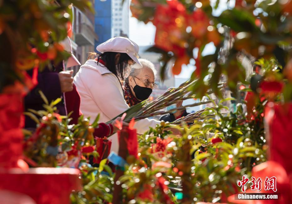 当地时间1月29日,美国旧金山市民在唐人街春节花市上购物。在一年一度的旧金山唐人街春节花市上,市民不但能购买到各种节日用品,还可以欣赏到舞狮、舞扇以及杂技等中国民俗表演。2021年,旧金山唐人街春节花市因新冠疫情而取消。中新社记者 刘关关 摄
