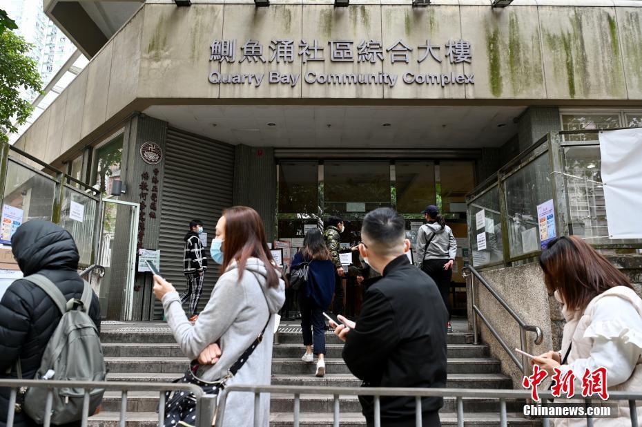 2月9日,大批香港市民于鲗鱼涌社区会堂社区检测中心外排队等候核酸检测。香港疫情持续发展,截至9日零时,香港新增1161宗新冠病毒阳性病例。 中新社记者 李志华 摄