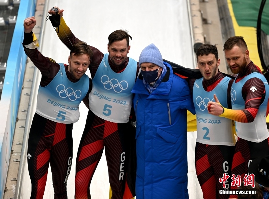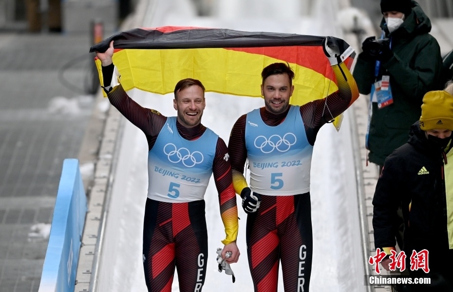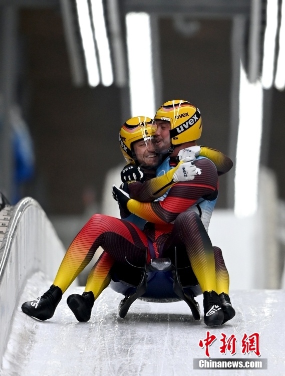 2月9日,北京2022年冬奥会双人雪橇项目在北京延庆国家雪车雪橇中心举行。德国传奇组合托比亚斯·文德尔/托比亚斯·阿尔特以两轮1分56秒554的好成绩夺得冠军,实现了该项目三连冠。 中新社记者 何蓬磊 摄
