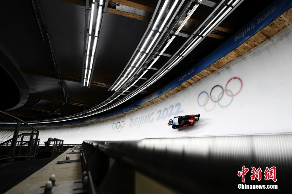 2月9日,北京2022年冬奥会双人雪橇项目在北京延庆国家雪车雪橇中心举行。图为中国组合黄叶波/彭俊越出战,以2分01秒572的成绩位列第17。这是中国选手首次参加冬奥会该项目。 中新社记者 何蓬磊 摄
