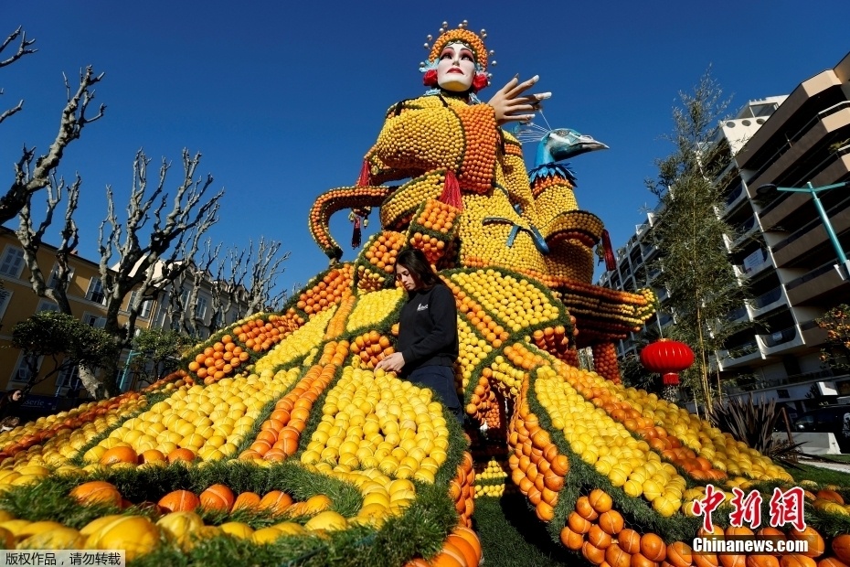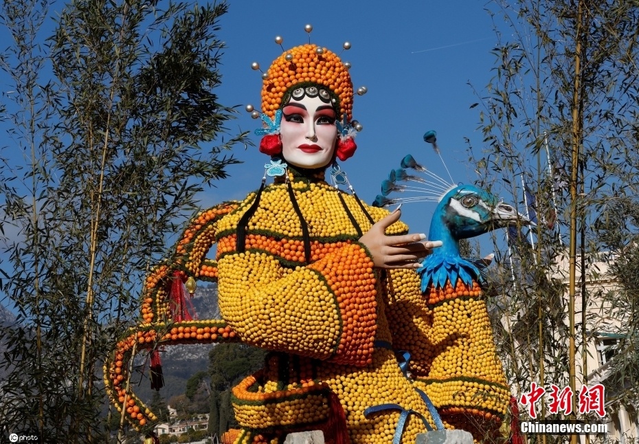 2月10日,法国芒通,第88届芒通柠檬节举行,本年度柠檬节的主题是“戏剧和舞蹈”,“京剧”造型的水果雕塑吸引眼球。