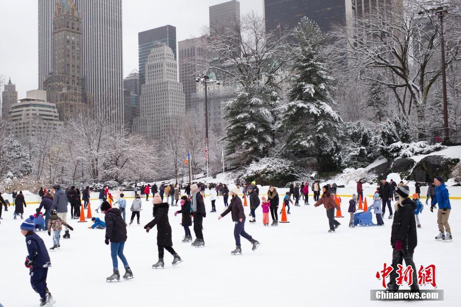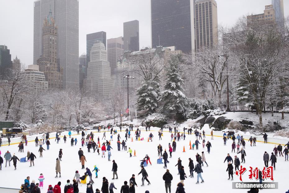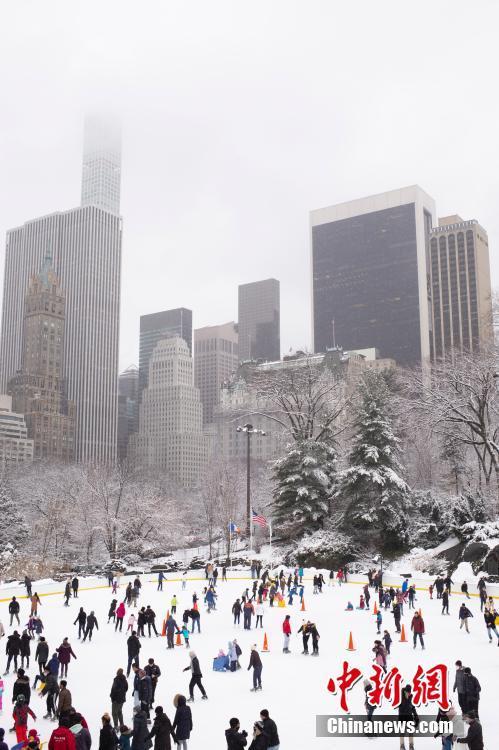 当地时间2月13日,美国纽约大雪纷飞,中央公园滑冰场冰雪交融的情景吸引众多民众前来滑冰。 中新社记者 廖攀 摄