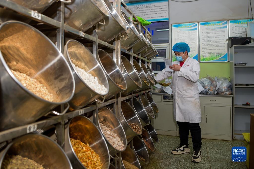 2月25日,内蒙古自治区中医医院药剂师根据处方复核中药。
