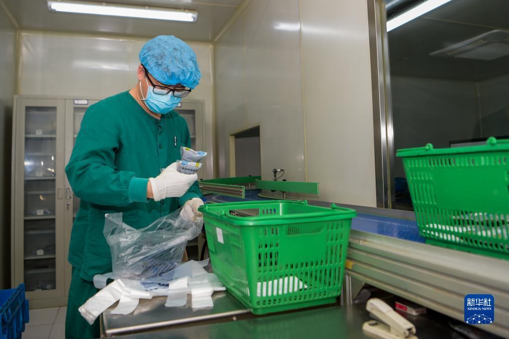 2月25日,内蒙古自治区中医医院药剂师分装中药汤剂。