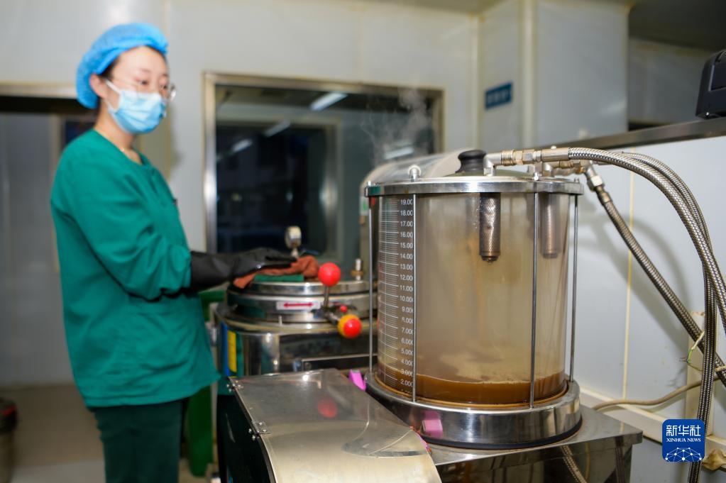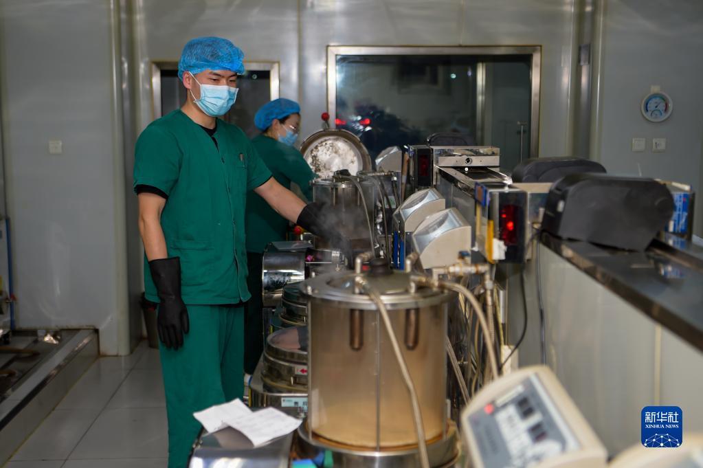 2月25日,内蒙古自治区中医医院药剂师查看中药煎煮情况。