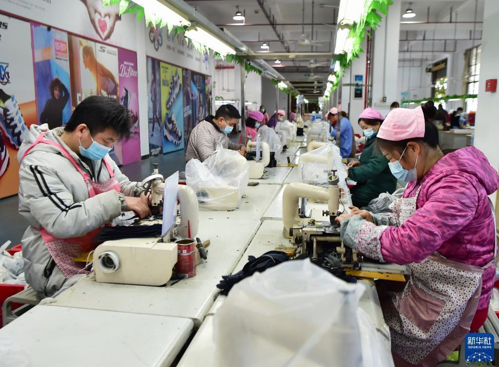 在莆田的一家鞋企生产线上,工人们正抓紧生产出口订单(2月24日摄)。