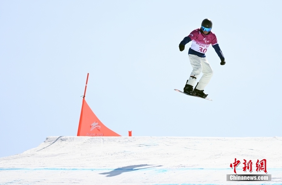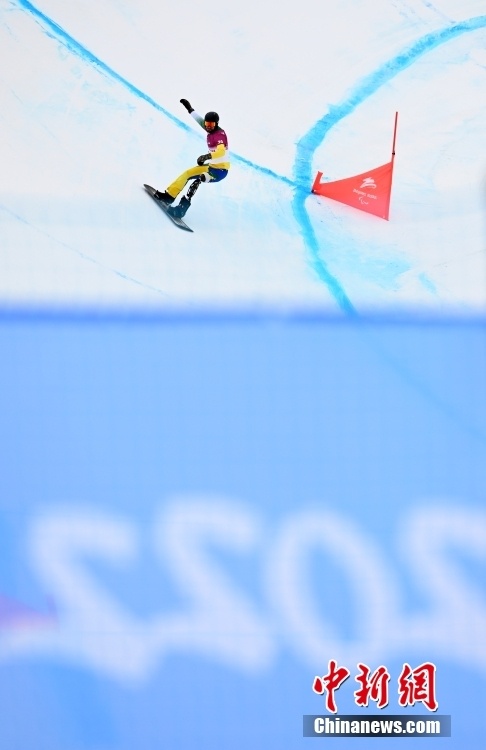 3月6日,北京2022年冬残奥会残奥单板滑雪男子障碍追逐-LL1级资格赛在张家口云顶滑雪公园举行,罗马尼亚选手米哈伊塔·帕帕拉参赛。中新社记者 侯宇 摄