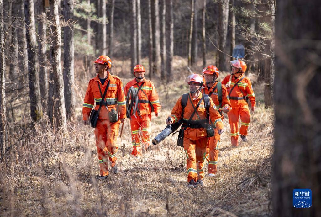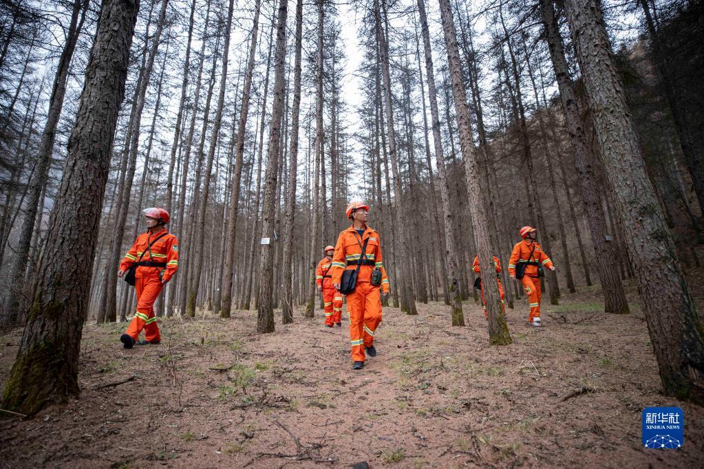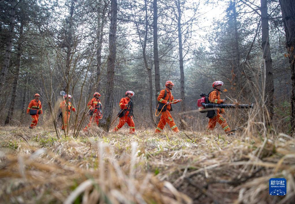 宁夏固原市六盘山林业局二龙河国有林场的工作人员在所辖林区进行防火巡护巡查(3月17日摄)。