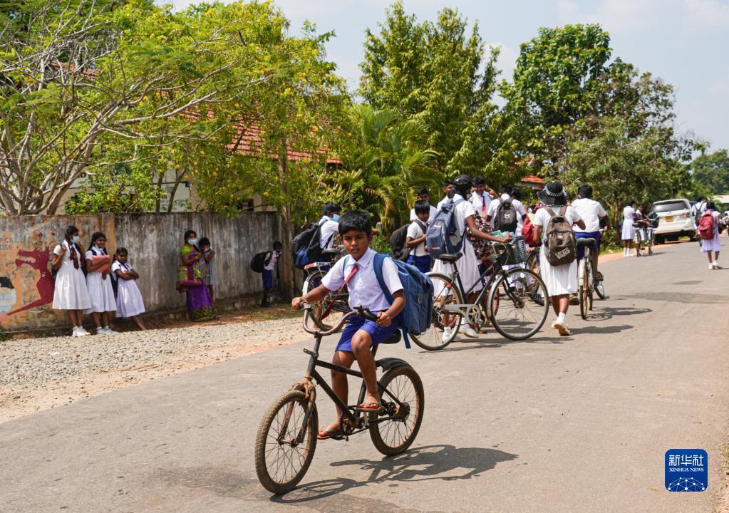 3月11日,在斯里兰卡瓦武尼亚地区,一名学生在学校附近的乡道上骑行。