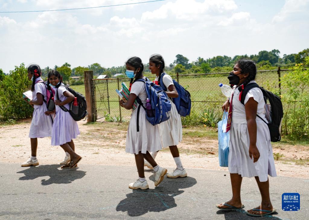3月11日,在斯里兰卡瓦武尼亚地区,学生们走在学校附近的乡道上。