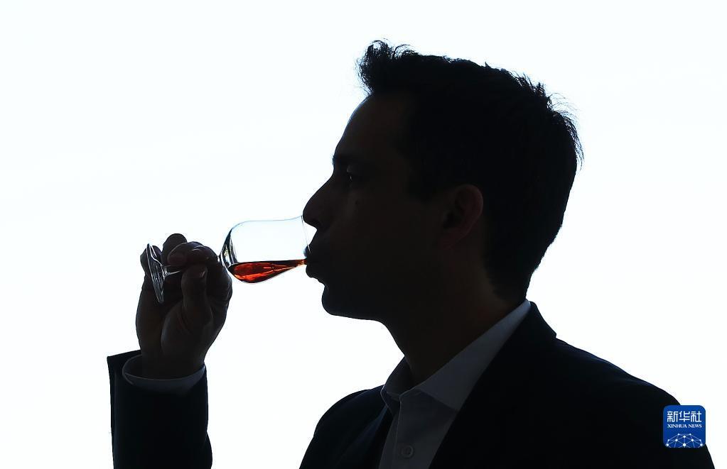 3月22日,在法国干邑,一名男子品尝轩尼诗干邑白兰地。