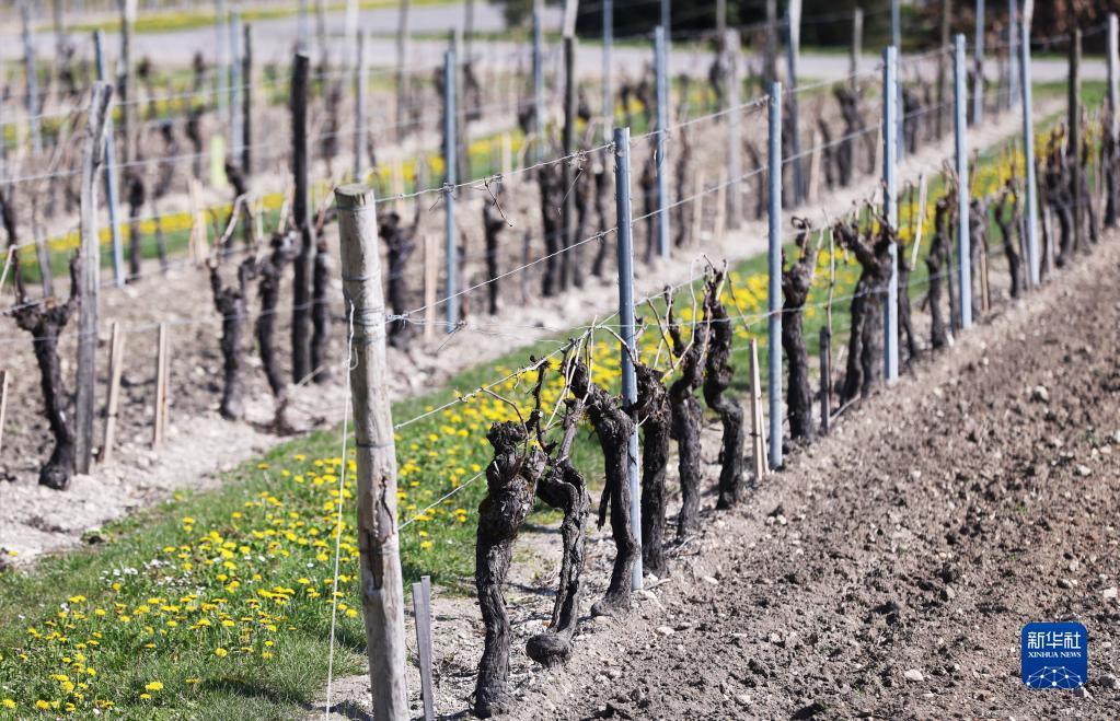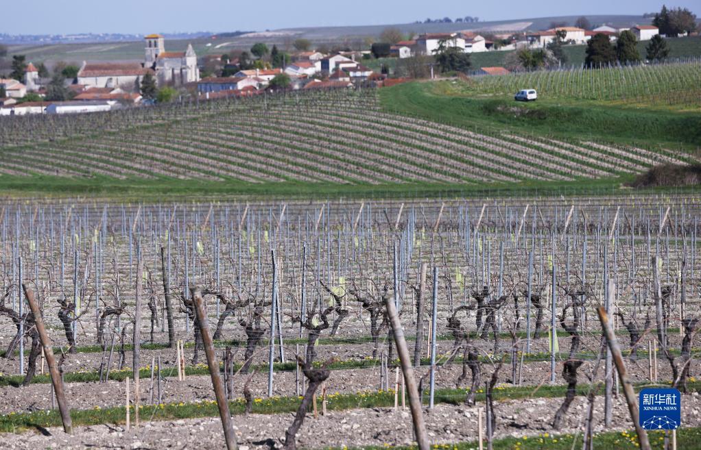 这是3月23日在法国干邑拍摄的葡萄园。