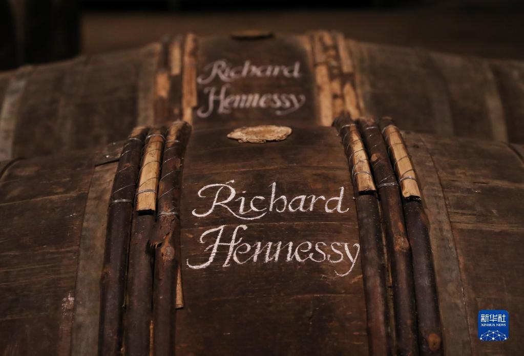 这是3月22日在法国干邑轩尼诗工厂酒窖拍摄的陈酒和样本。