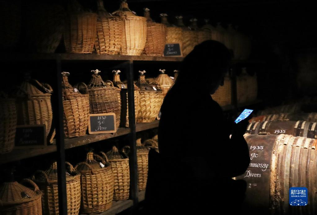 这是3月22日在法国干邑轩尼诗工厂拍摄的存放陈酒和样本的酒窖。
