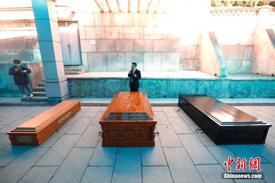 3月31日,工作人员向媒体介绍特体棺椁。当日,北京市八宝山殡仪馆举办第六届开放日活动,活动主题为“公益、生态、人文、品牌、温暖”,介绍了八宝山殡仪馆惠民殡葬、人文殡葬等方面的多种举措。 中新社记者 富田 摄