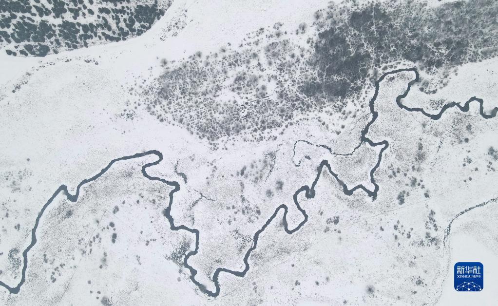 这是4月13日拍摄的赛罕坝国家森林公园雪景(无人机照片)。