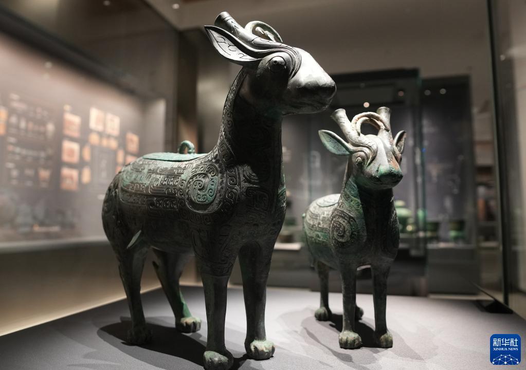 这是陕西考古博物馆展出的宝鸡石鼓山商周墓地出土的牺尊(4月16日摄)。