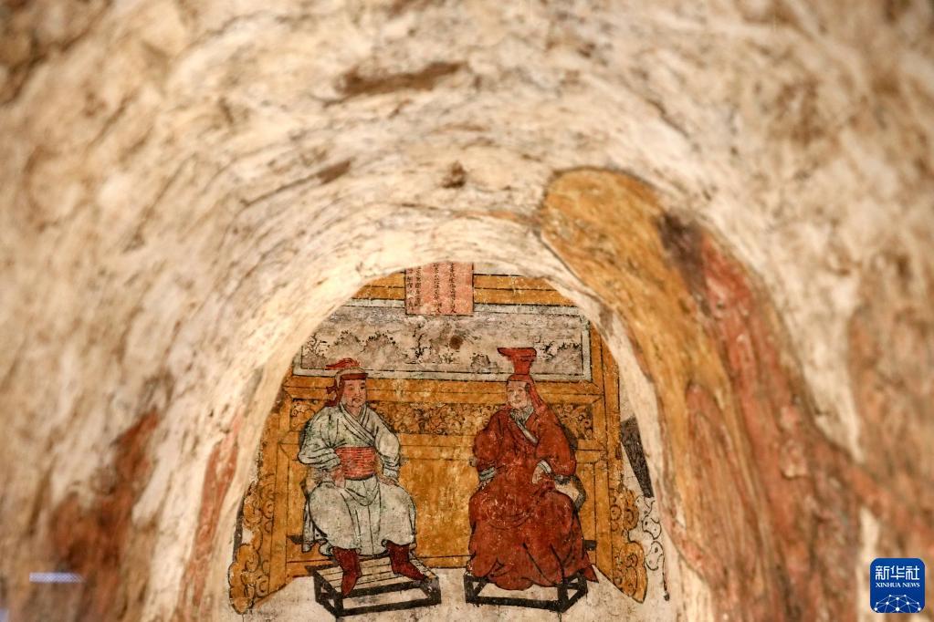 这是陕西考古博物馆展出的蒲城县洞耳村元代壁画墓(4月16日摄)。