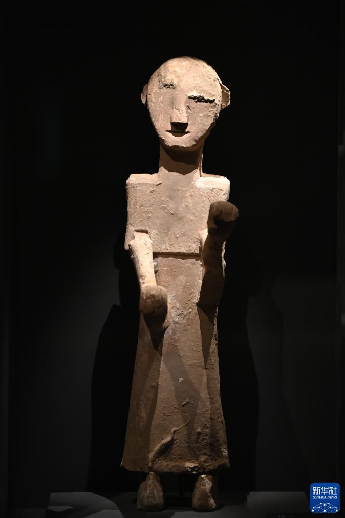 这是陕西考古博物馆展出的西周晚期木俑(4月16日摄)。