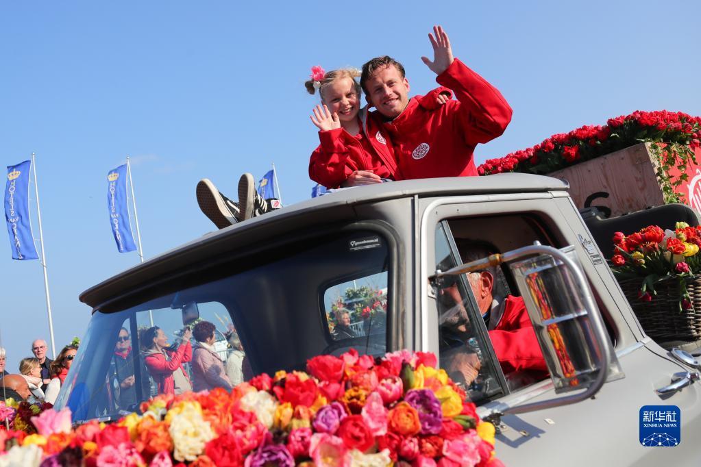 4月23日,人们在荷兰诺德韦克市观看花车巡游。