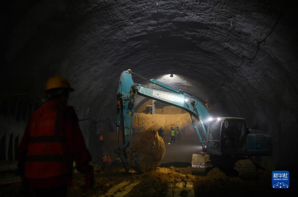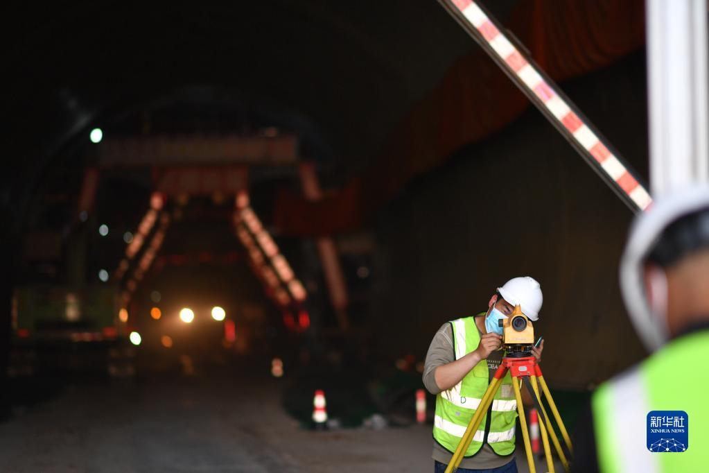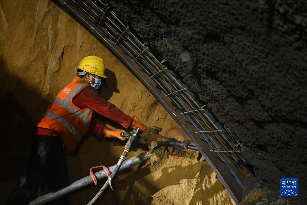 4月25日,中铁二十局施工人员在位于延安市洛川县的西延高铁XYZQ-8标段洛川隧道作业。