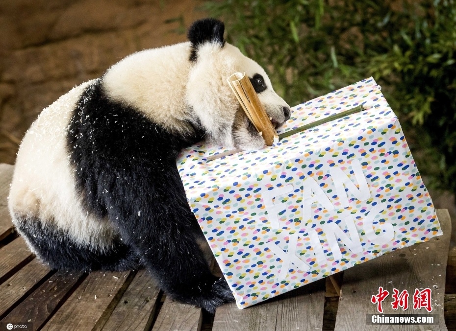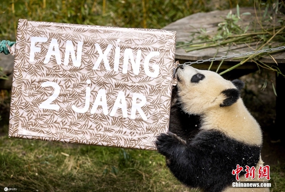 当地时间5月1日,荷兰雷嫩,旅荷大熊猫宝宝“繁星”过2周岁生日。图片来源:ICphoto