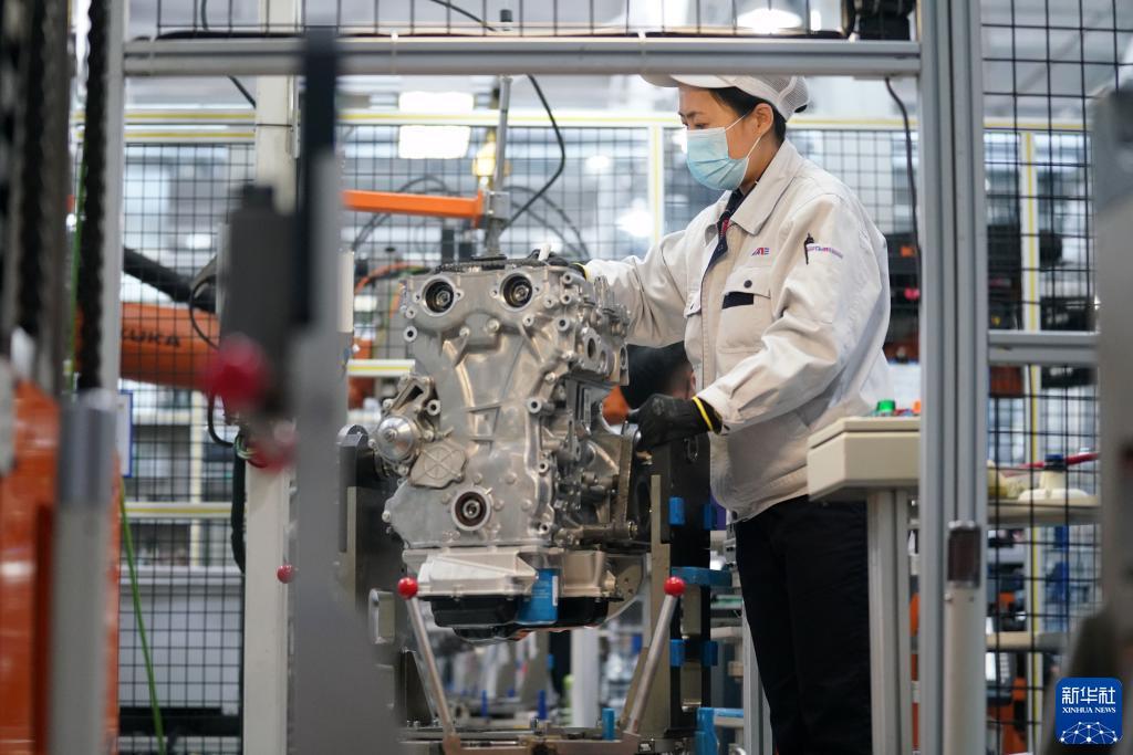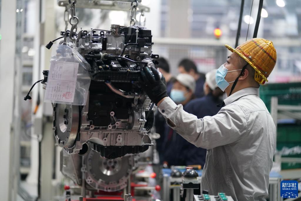 4月15日,在哈尔滨东安汽车动力股份有限公司生产车间,工人在生产作业。