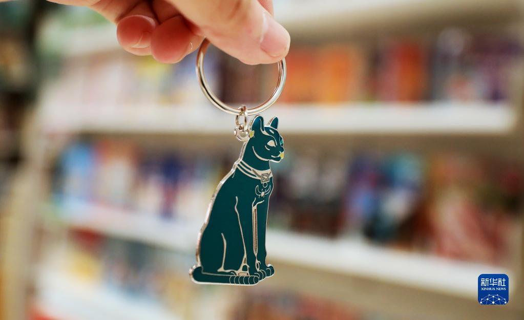这是5月11日在英国伦敦大英博物馆拍摄的以藏品“盖尔-安德森猫”为灵感的文创产品。“盖尔-安德森猫”是一件古埃及青铜猫坐像,收藏家盖尔-安德森1939年将其捐赠给大英博物馆,从此雕像得名“盖尔-安德森猫”。