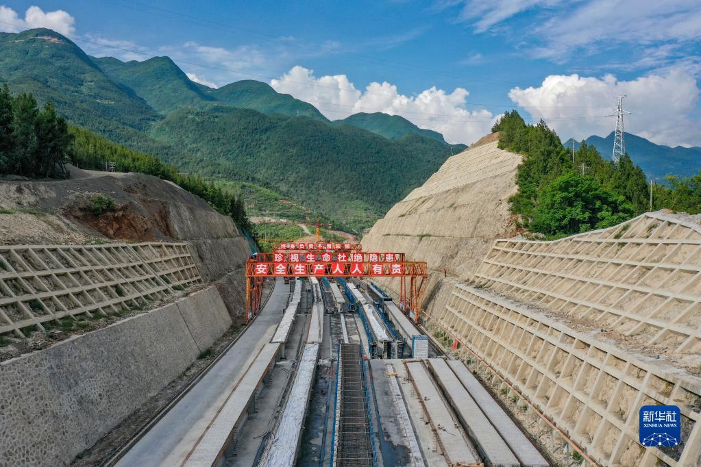 这是5月11日拍摄的巫镇高速公路一标段施工现场(无人机照片)。