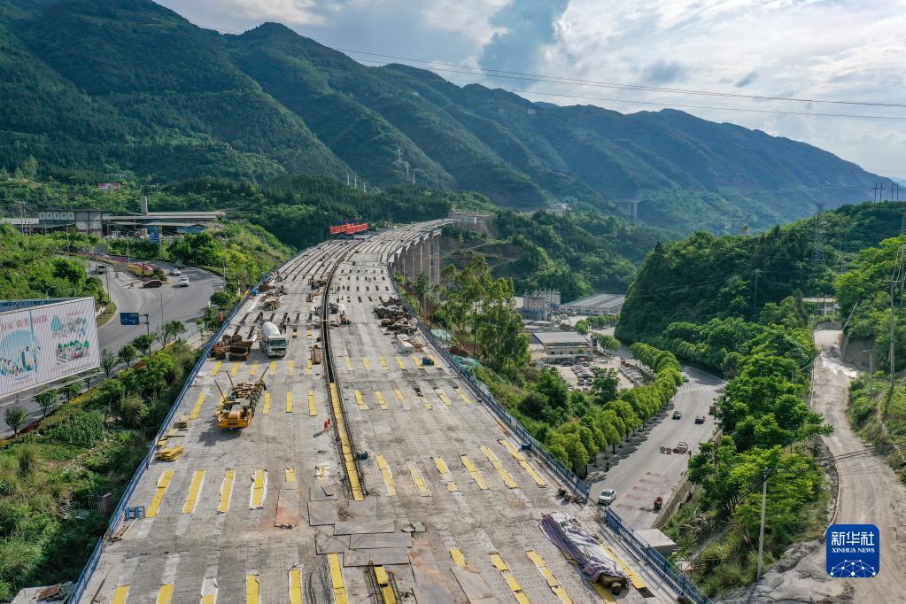 这是5月10日拍摄的巫镇高速公路二标段施工现场(无人机照片)。