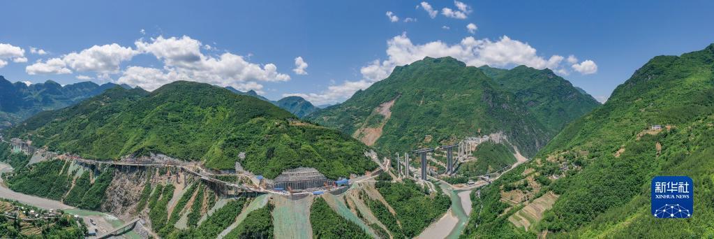 这是5月10日拍摄的巫镇高速公路二标段施工现场(无人机全景照片)。