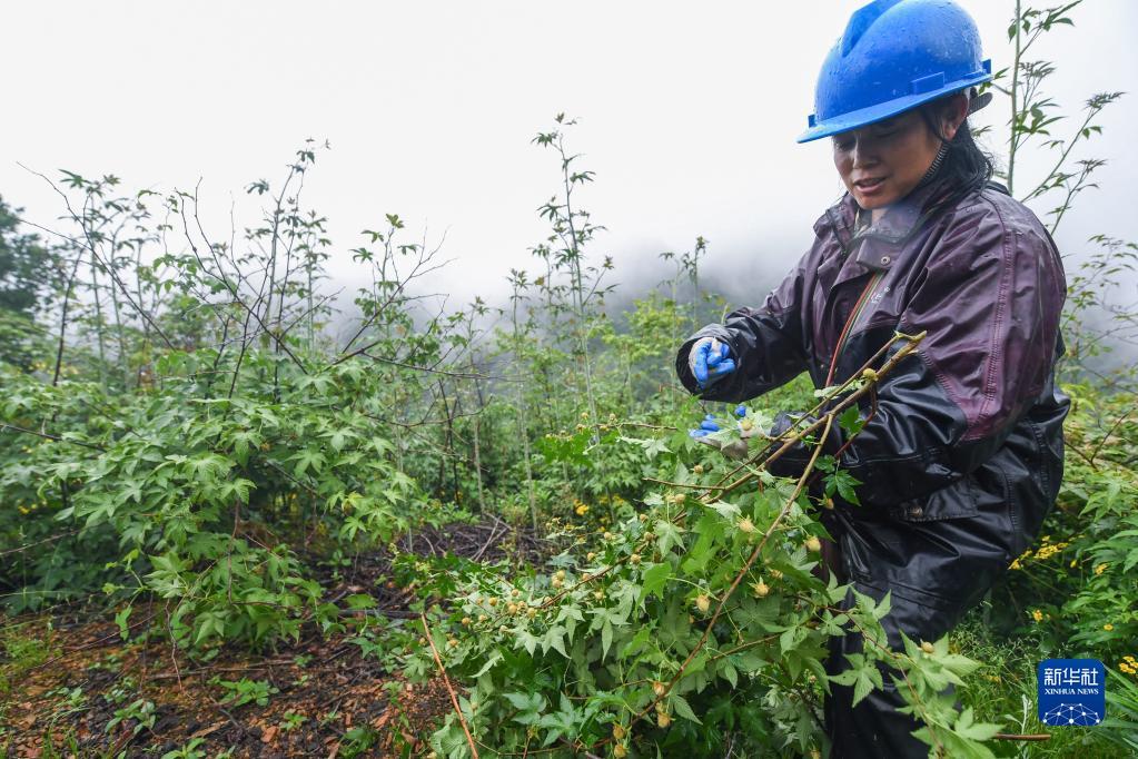 5月12日,临岐镇夏中村的村民姚苹香在山上采摘覆盆子青果。新华社记者 徐昱 摄