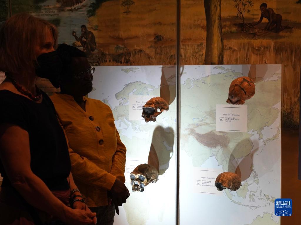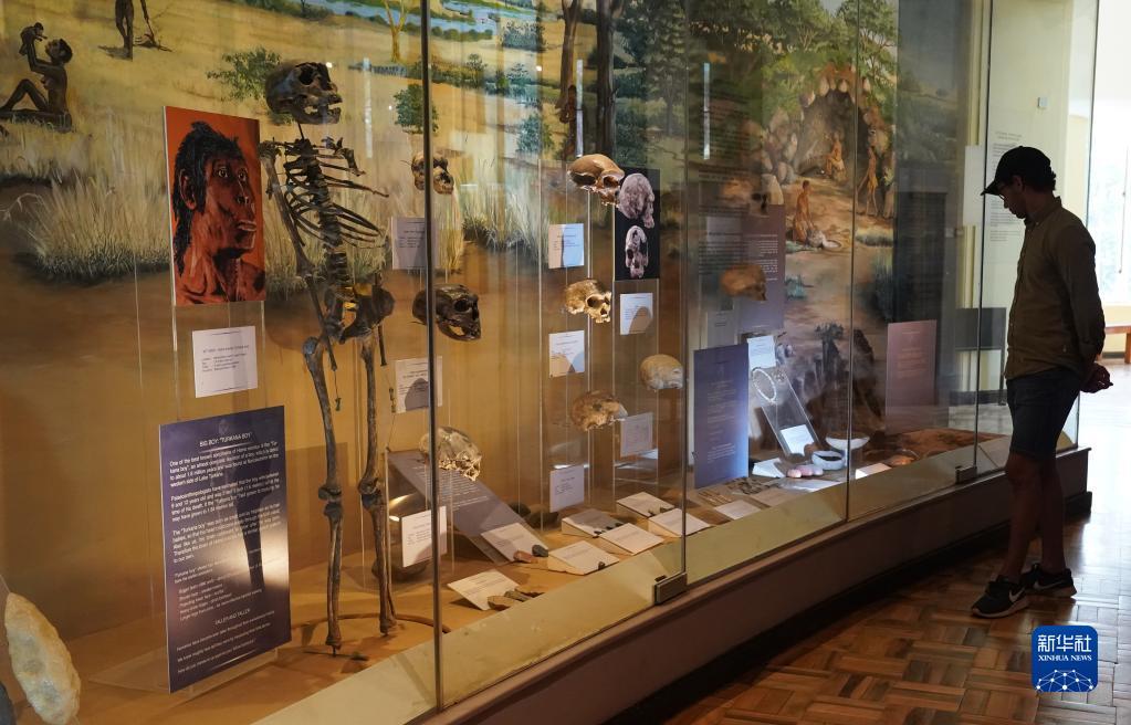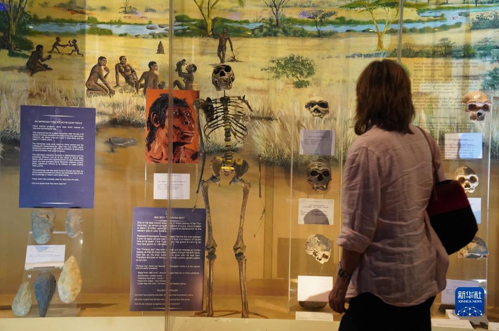 5月16日,一名游客在内罗毕国家博物馆人类起源展厅参观。